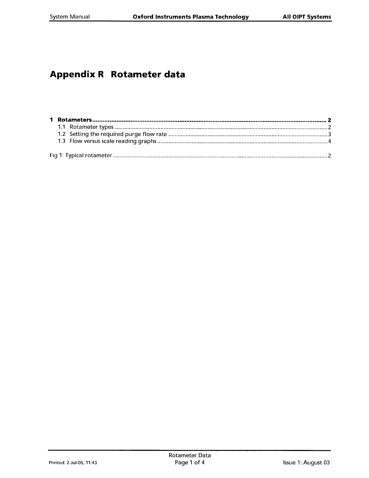 All OIPT Systems 1 Rotameters Oxford Instruments Plasma Technology System Manual A rotameter is a manually controlled variable valvelindicating tube, used by OIPT to manually set the flow rate' for various gas suppl…