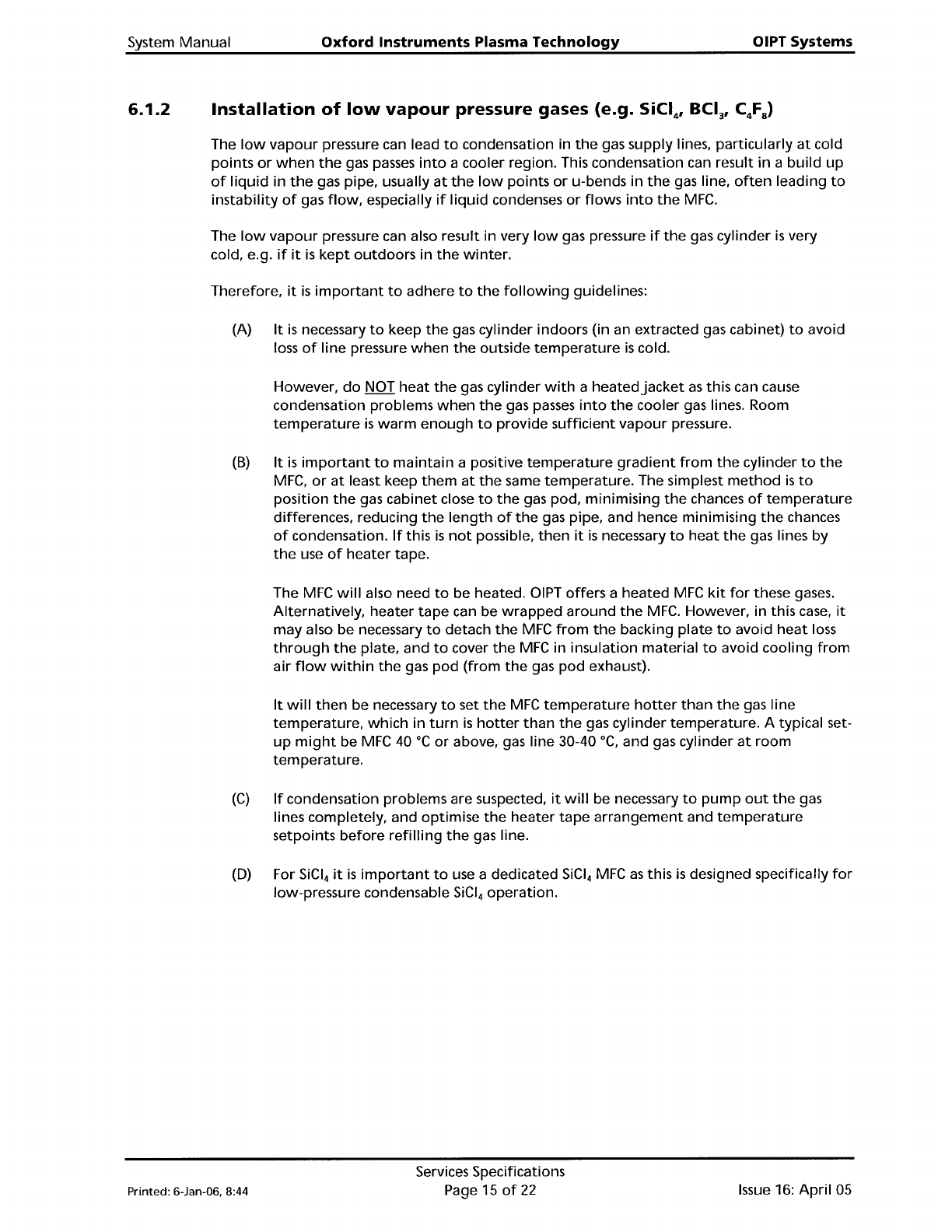 System Manual Oxford Instruments Plasma Technology OIPT Systems 6.1.2 Installation of low vapour pressure gases (e.g. SiCI 4 • BCI 3 • C 4 F s ) The low vapour pressure can lead to condensation in the gas supply lines, p…