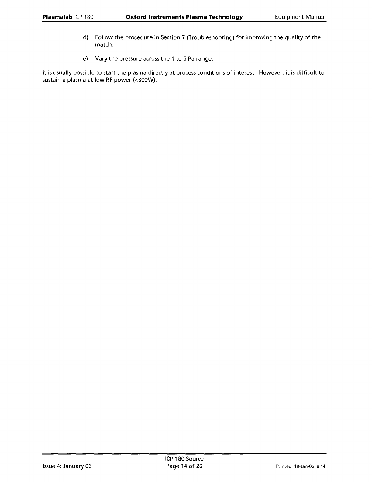Equipment Manual Oxford Instruments Plasma Technology WARNING Plasma lab ICP 180 BEFORE PROCEEDING WITH ANY MAINTENANCE WORK, READ SECTION 1 - HEALTH AND SAFETY. 6. Maintenance 6.1 Maintenance schedule The maintenance re…