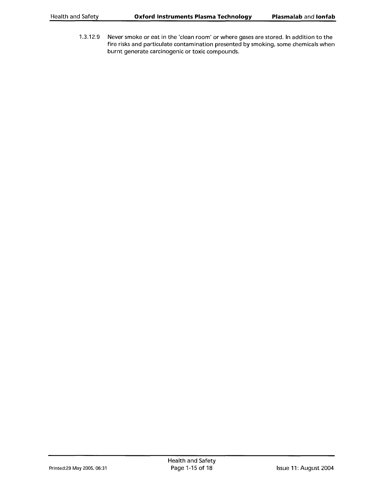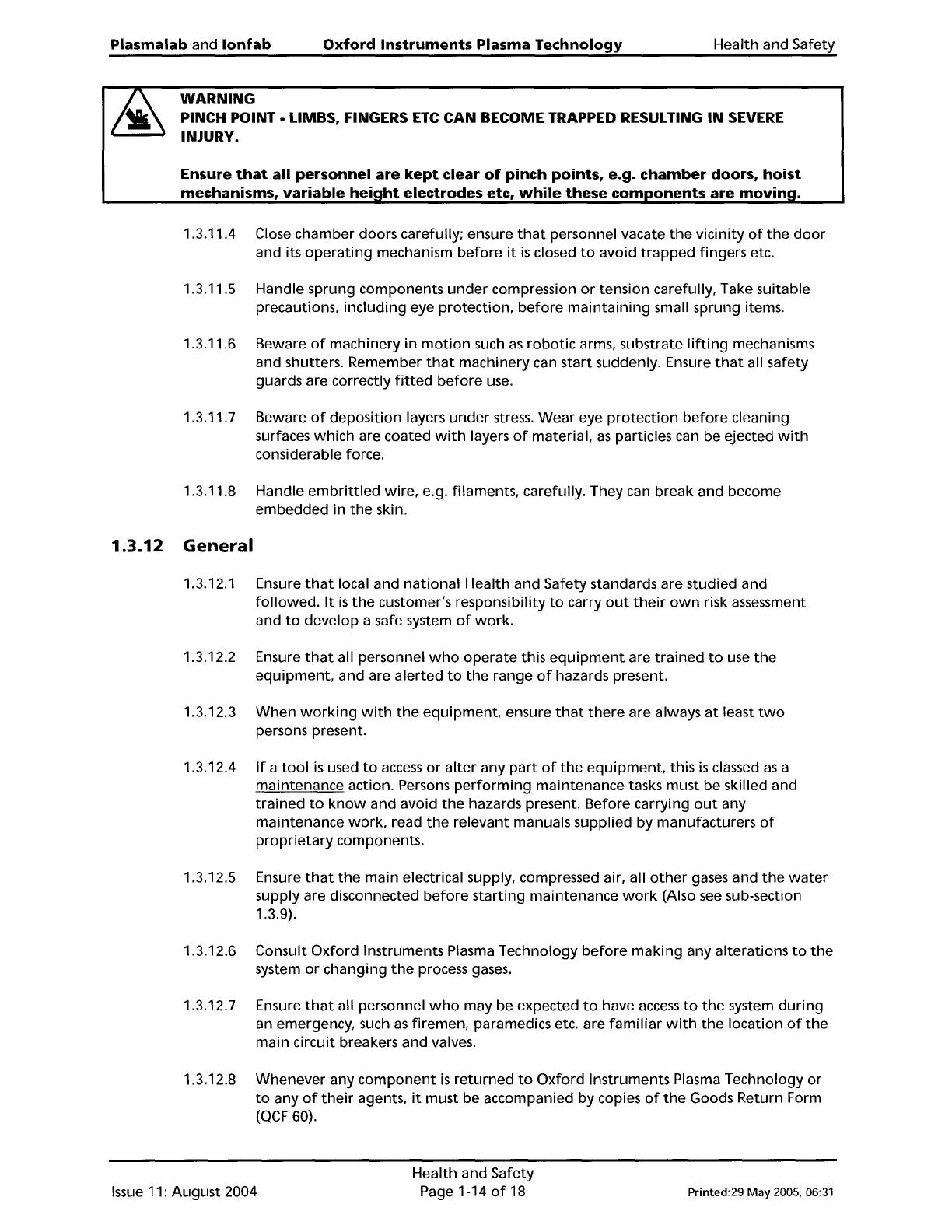 Plasma lab and lonfab Oxford Instruments Plasma Technology Health and Safety WARNING PINCH POINT· LIMBS, FINGERS ETC CAN BECOME TRAPPED RESULTING IN SEVERE INJURY. Ensure that all personnel are kept clear of pinch points…