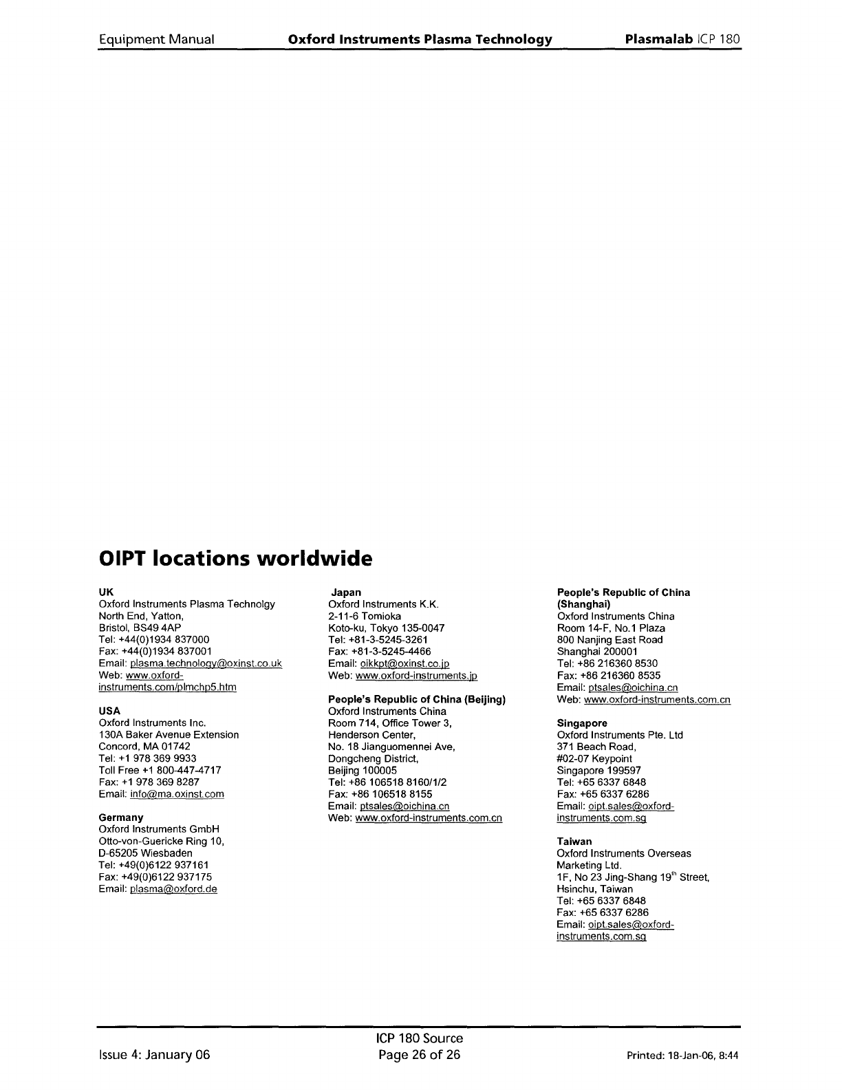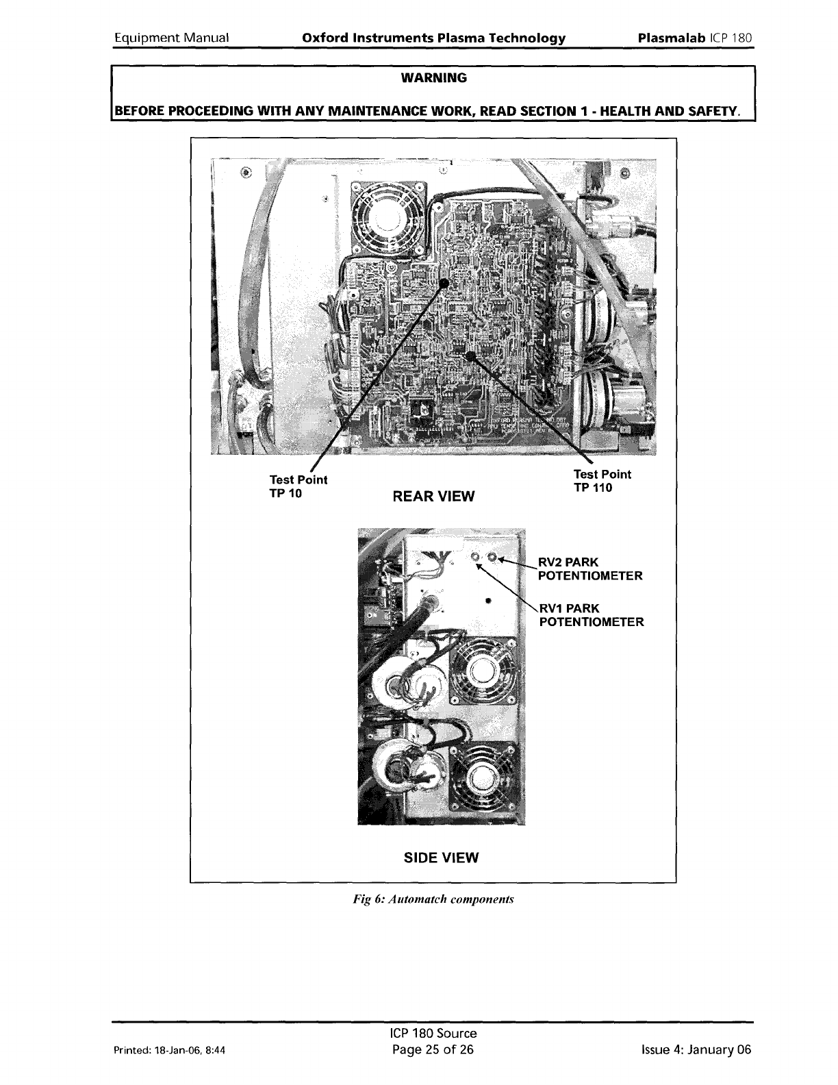 Equipment Manual Oxford Instruments Plasma Technology WARNING Plasma lab ICP 180 BEFORE PROCEEDING WITH ANY MAINTENANCE WORK, READ SECTION 1 - HEALTH AND SAFETY. Printed: 18-Jan-06. 8:44 Test Point TP 10 REAR VIEW SIDE V…