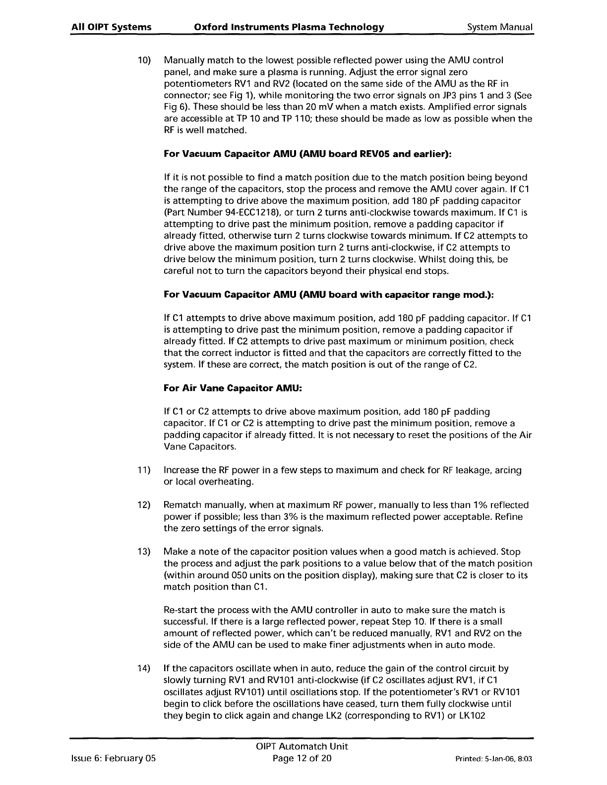 All OIPT Systems Oxford Instruments Plasma Technology System Manual 10) Manually match to the lowest possible reflected power using the AMU control panel, and make sure a plasma is running. Adjust the error signal zero p…