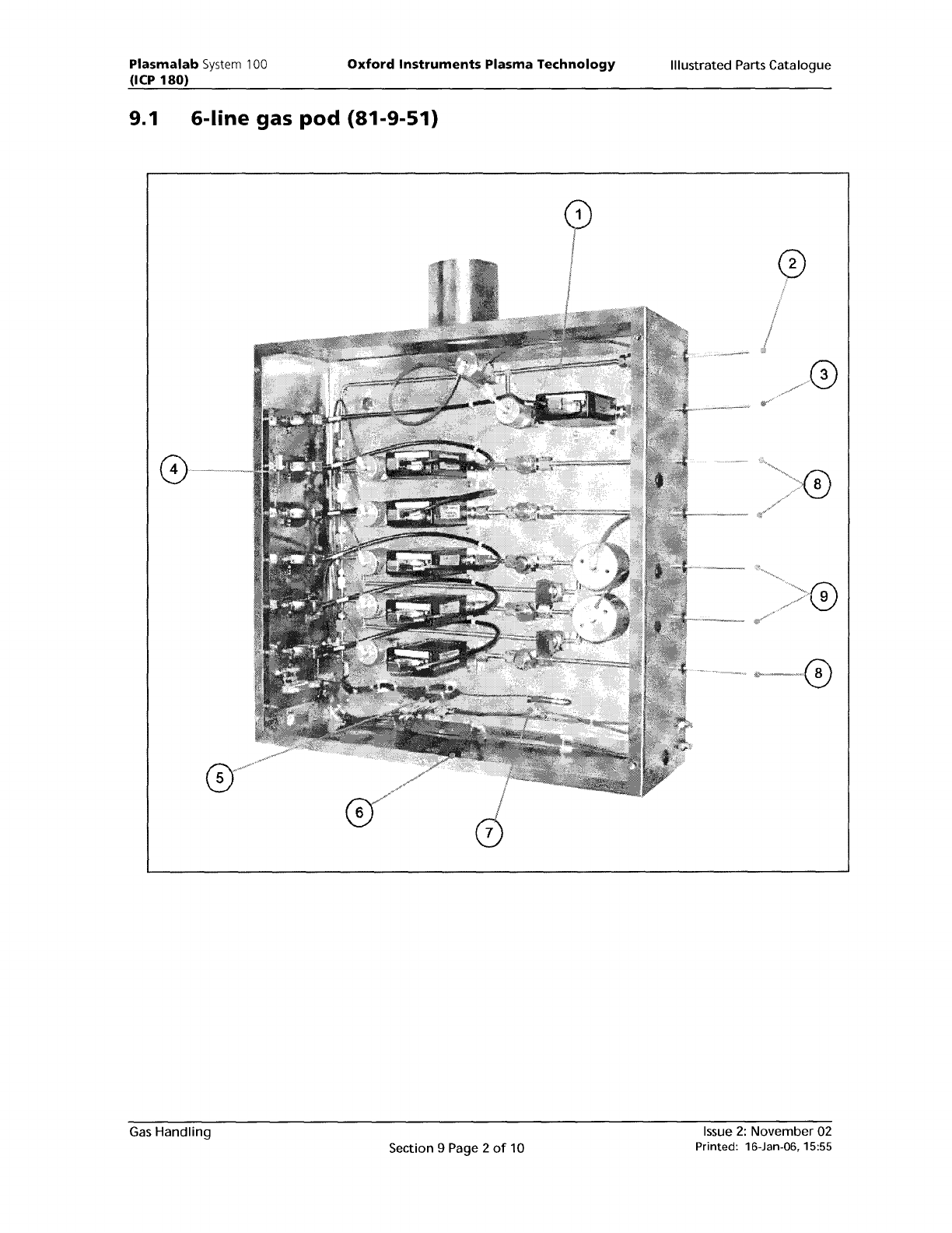 Plasmalab System 100 (ICP 180) Oxford Instruments Plasma Technology Illustrated Parts Catalogue 9.1 6-line gas pod (81-9-51) CD I Gas Handling Section 9 Page 2 of 10 Issue 2: November 02 Printed: 16-Jan-06, 15:55