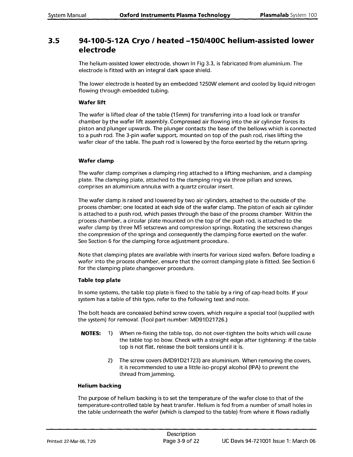System Manual Oxford Instruments Plasma Technology Plasma lab System 100 3.5 94-100-5-12A Cryo / heated -150/400C helium-assisted lower electrode The helium-assisted lower electrode, shown in Fig 3.3, is fabricated from …