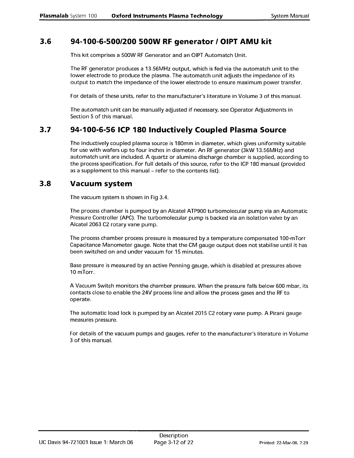 Plasma lab System 100 Oxford Instruments Plasma Technology System Manual 3.6 94-100-6-500/200 500W RF generator / OIPT AMU kit This kit comprises a 500W RF Generator and an OIPT Automatch Unit. The RF generator produces …