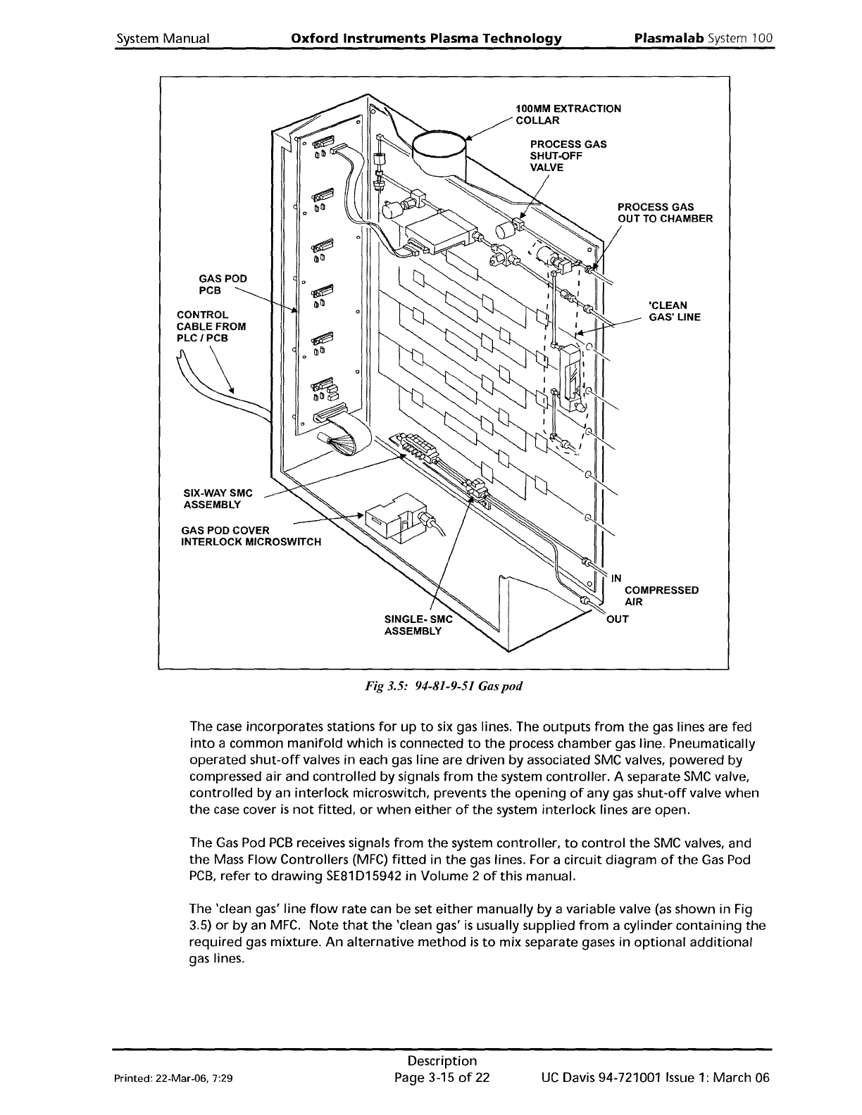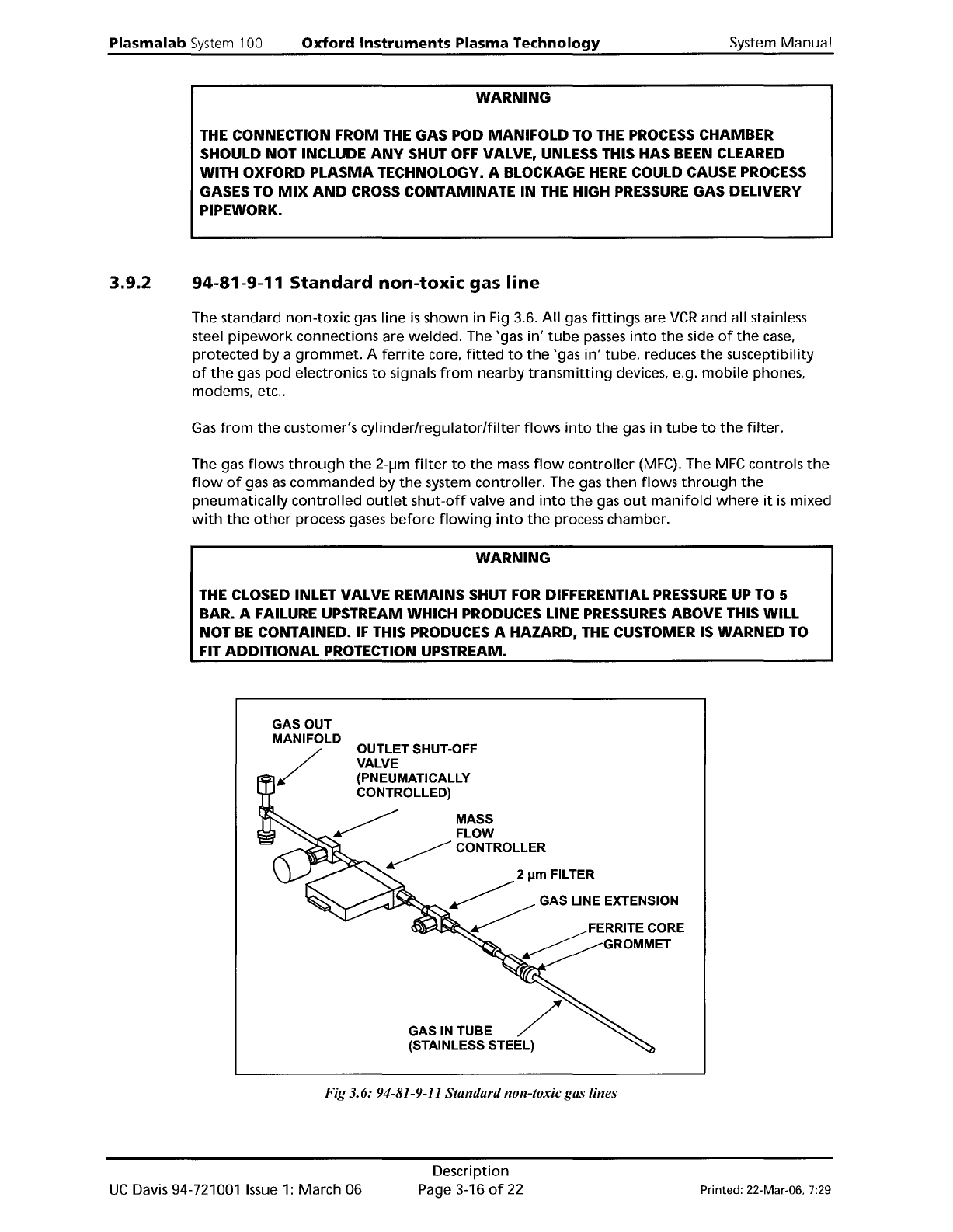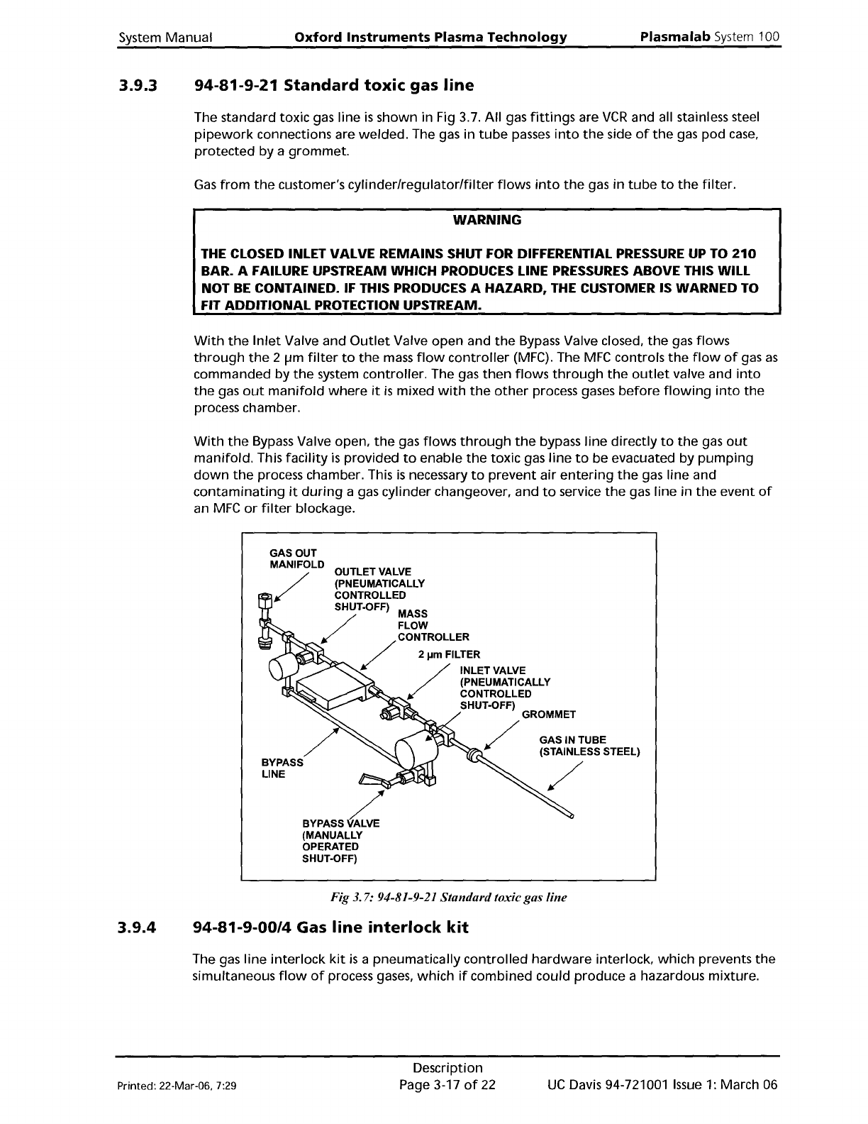 Plasma lab System 100 Oxford Instruments Plasma Technology WARNING System Manual 3.9.2 THE CONNECTION FROM THE GAS POD MANIFOLD TO THE PROCESS CHAMBER SHOULD NOT INCLUDE ANY SHUT OFF VALVE, UNLESS THIS HAS BEEN CLEARED W…
