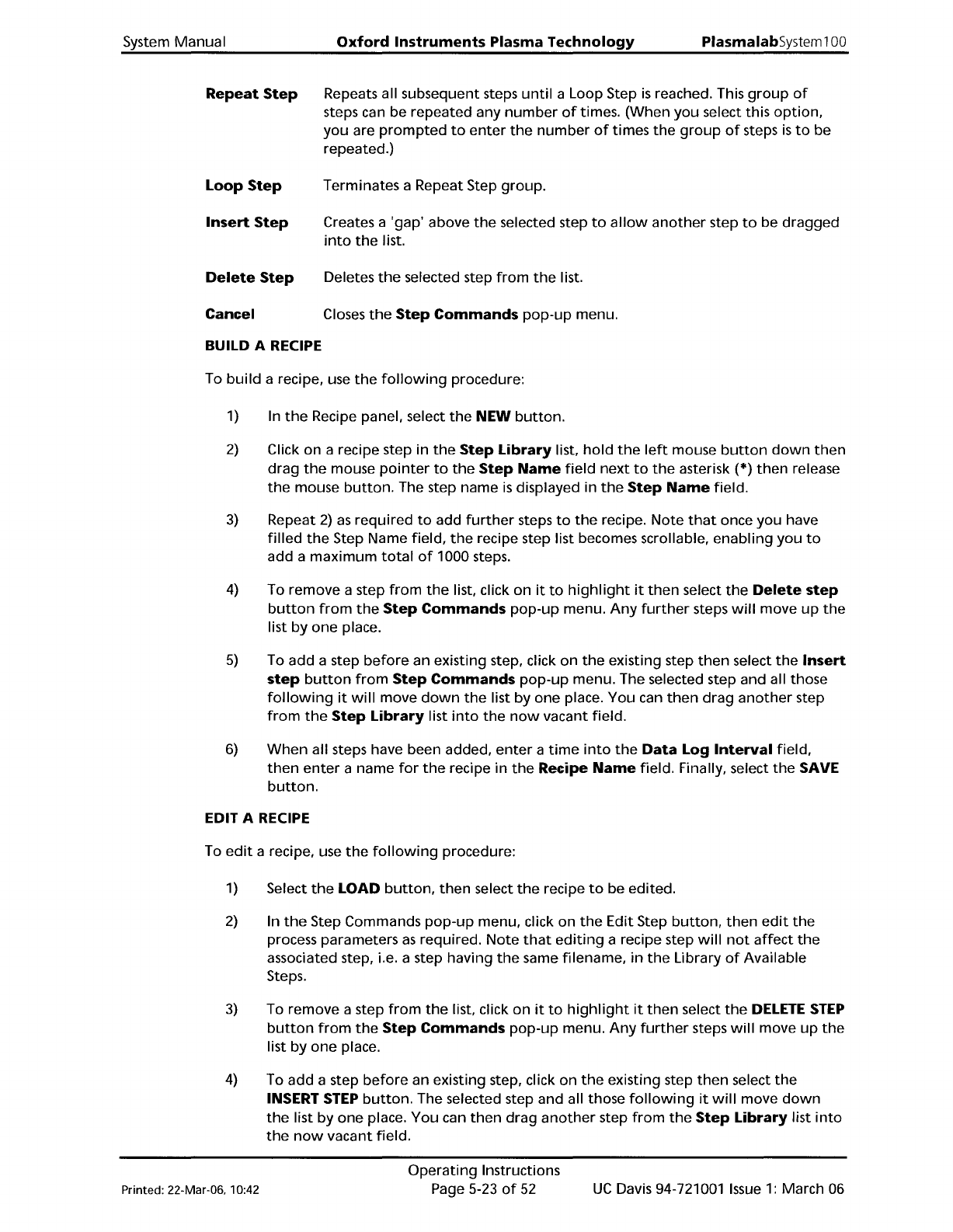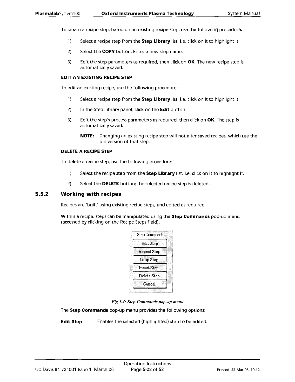 PlasmalabSystem 1 00 Oxford Instruments Plasma Technology System Manual 5.5.2 To create a recipe step, based on an existing recipe step, use the following procedure: 1) Select a recipe step from the Step Library list, i.…