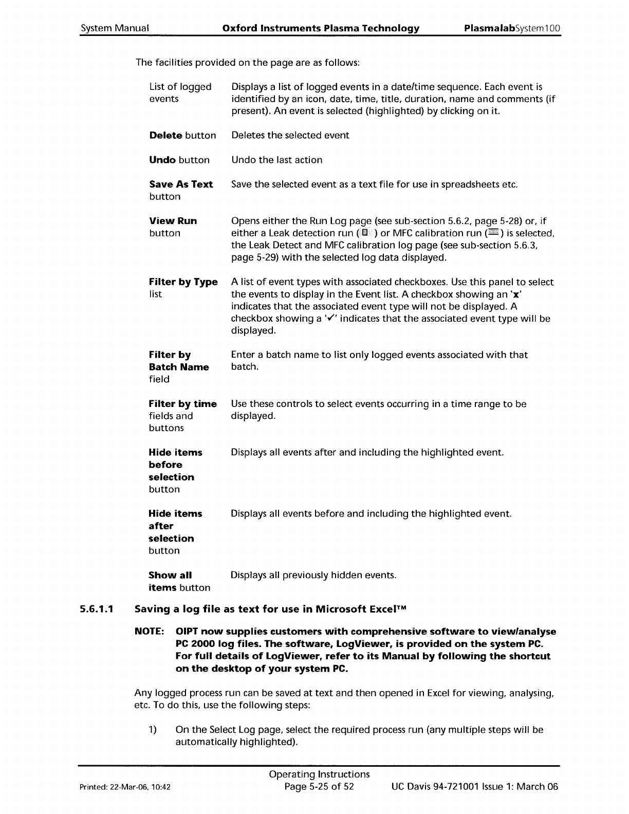 PlasmalabSystem 1 00 Oxford Instruments Plasma Technology System Manual 2) Select the Save As Text button. The Save As dialogue is displayed. 3) Navigate to the target location for the log text file, enter a filename and…