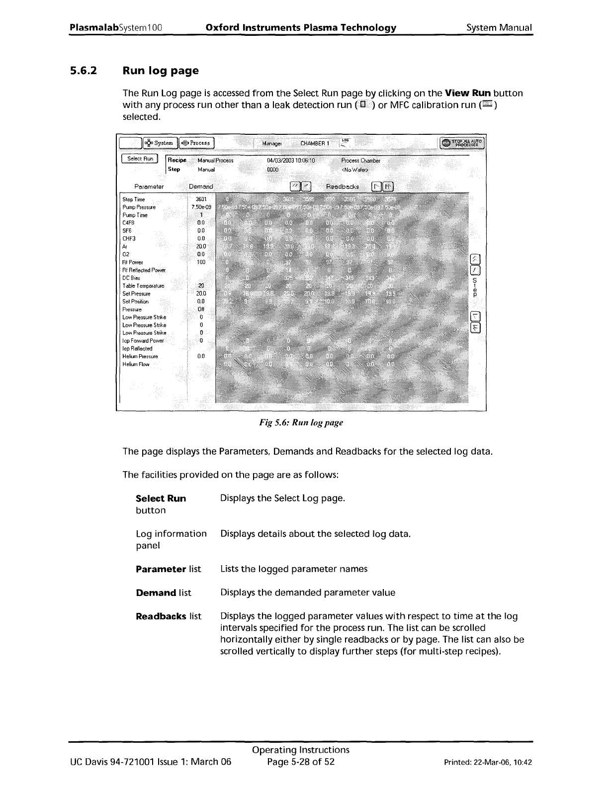 System Manual Oxford Instruments Plasma Technology PlasmalabSystem 100 5.6.3 Leak detection and MFC calibration log page The leak detection and MFC calibration log page is accessed from the Select Run page by selecting e…