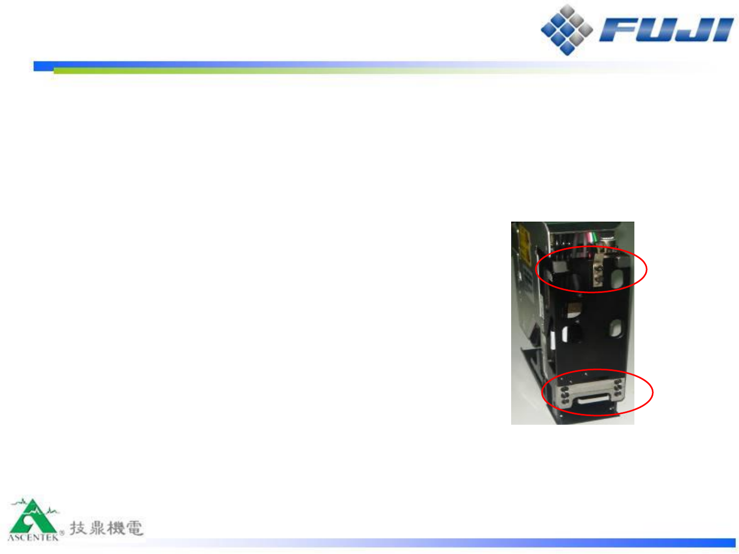 在完成以上任一保養作業,工作頭 裝回機器模組 前還應該進行工作頭與機器接觸面 的保養(此項保養作業卸下工作頭行為 時請務必實施)。 紅色標示部分用 Daphne Exponex No.2 潤滑保養, 以防接觸面磨損或因干涉導致安裝不 良。 3.5 工作頭裝回機器前的保養