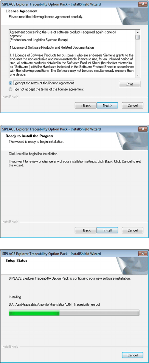 Installation of Trace Service and Monitor 4.3.1 Installation of Trace Monitor Traceability Option for SIPLACE Explorer Installation Manual SIPLACE Traceability 3.6 25 ► Read the license conditions. Click on I accept . ..…