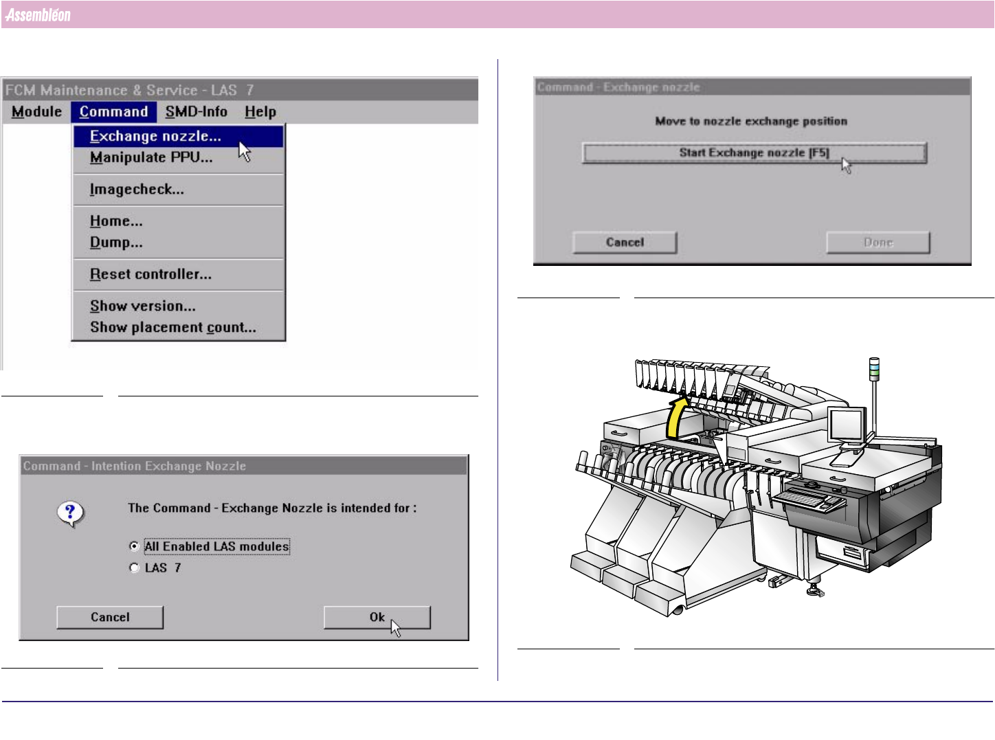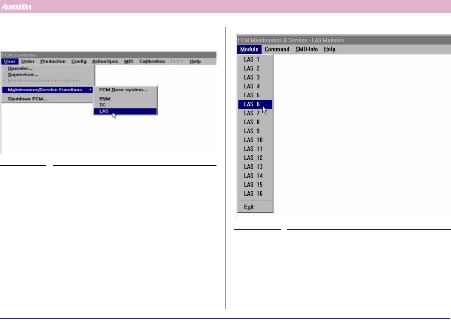 4022 591 960 62 Operating Manual 02.0 2 FCM Mu ltif lex 55 New Progr am Selection 8.5 Exchange Nozzles 1. Sel ect “ Use r ” - “ Ma intenance/Se rvice fu nctions ” - “ LAS ” SCREEN 33 2. Select sp ecific Las number SCREEN…
