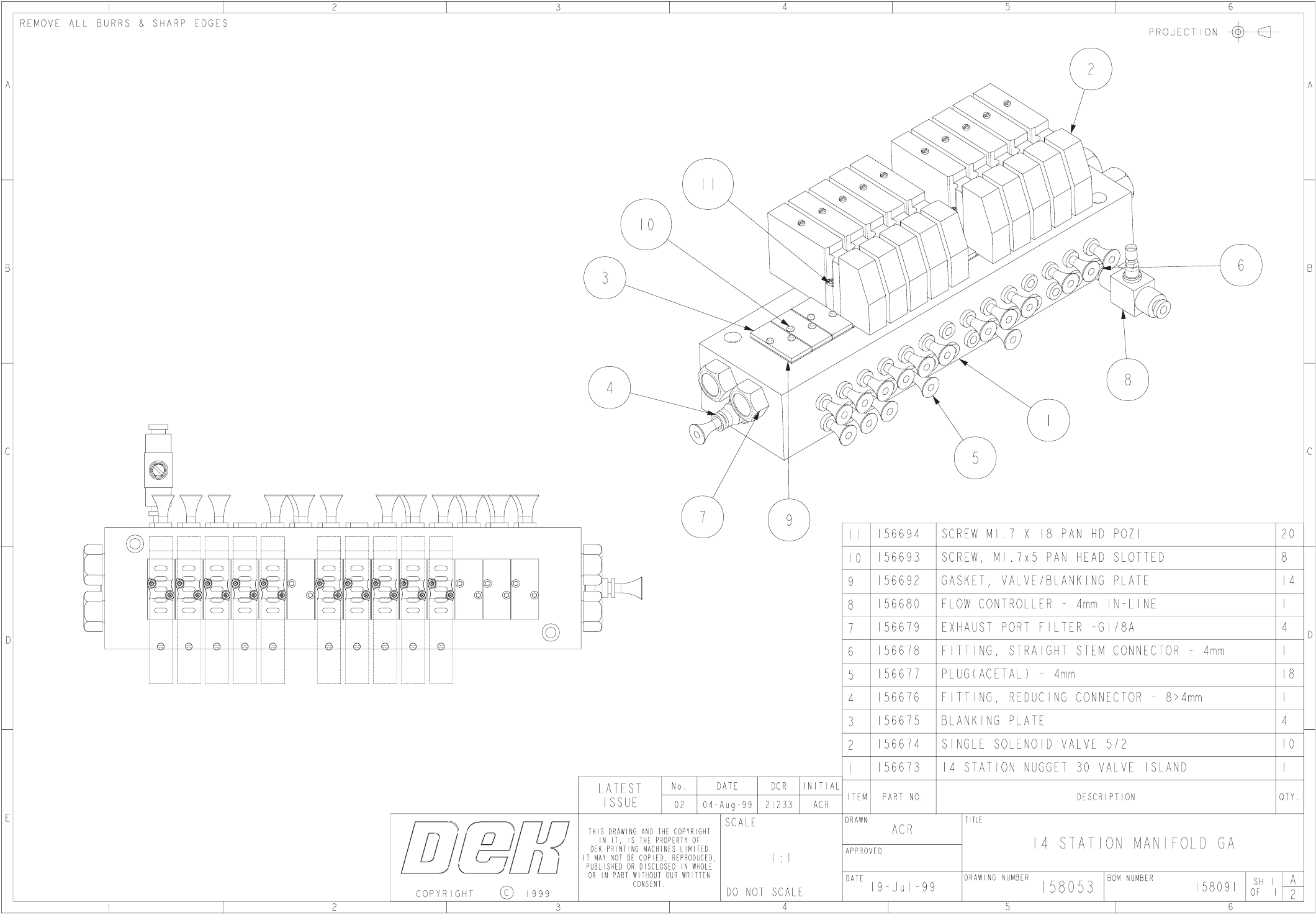 52 Mechanical Drawings 158090S1 Issue 1 3 Pn eumatic Circ uit Infinit y 5 4 3 2 1 A B C C B A 1 2 3 4 5 REMOVE ALL BURRS & SHARP EDGES REMOVE ALL BURRS & SHARP EDGES 6 7 8 9 10 11 12 13 6 7 8 9 10 11 11 12 13 D E…
