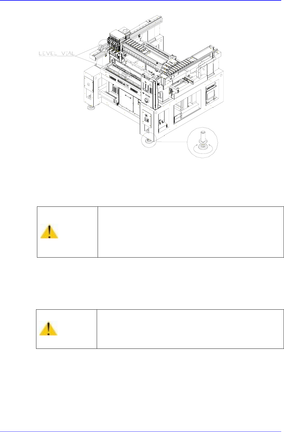 Samsung Component Placer CP-45F(V)/FS Operations Manual 5-4 Figur e 5-1. Height Adjustment of Equipment - Use a spanner supplied 5. Ensure the level surface by placing a leve ling device on top of the feeder base and L/M…
