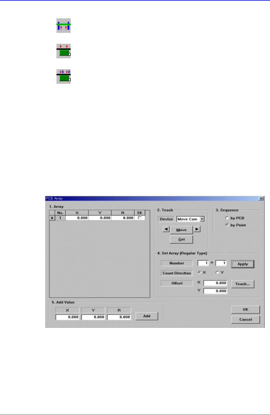Array PCB and the placement origin of PCB. When this button is clicked on, the