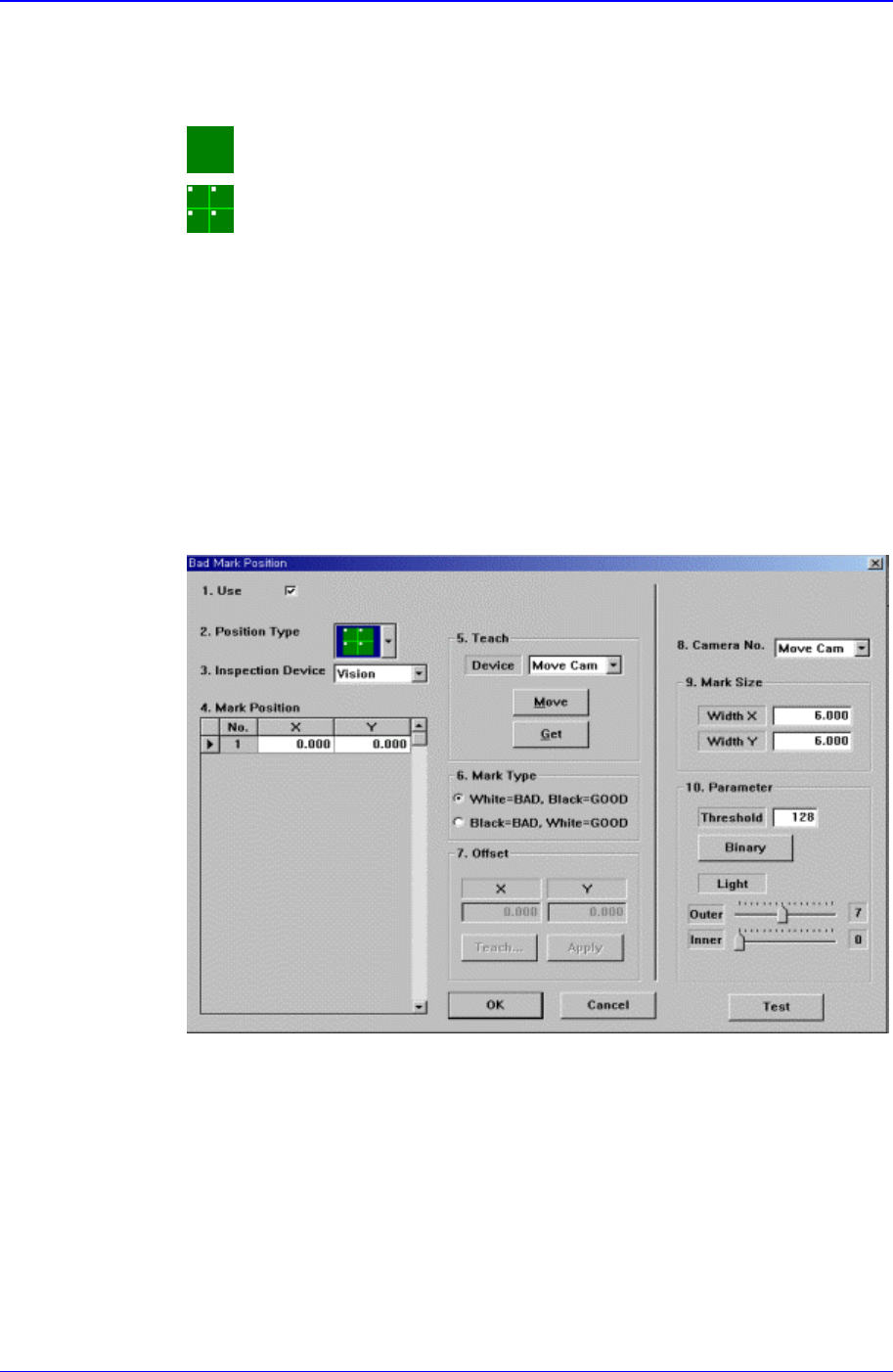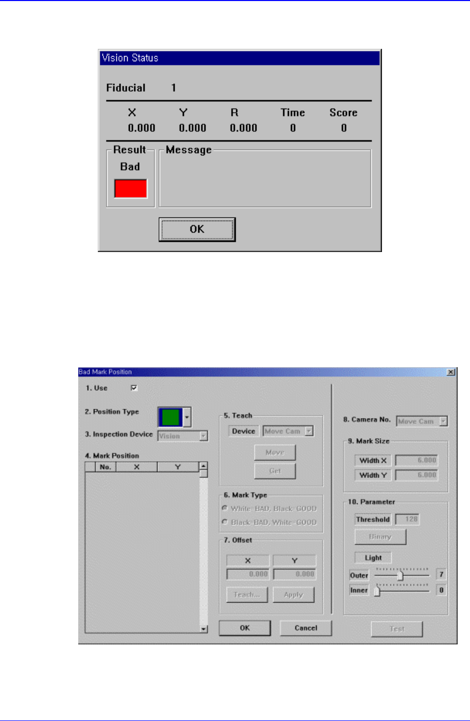 Figure 11-15. “Bad Mark Position” dialog box(When the Position Type is “Panel”)