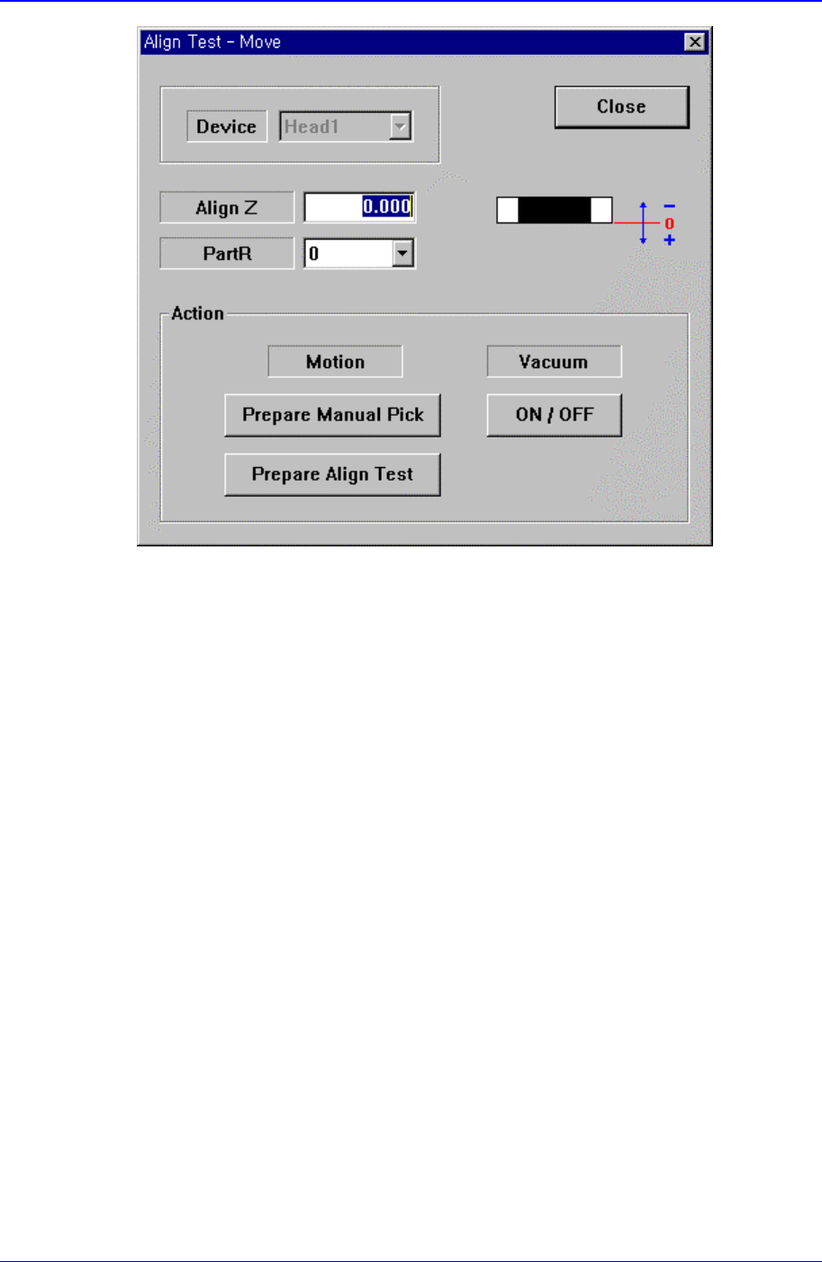 Samsung Component Placer CP-45F(V)/FS Operations Manual 11-38 <V acuum ON/OFF> button T urns on/of f the vacuum generator of the head for com ponent pickups or release. <T est> button T ests co mponent re…