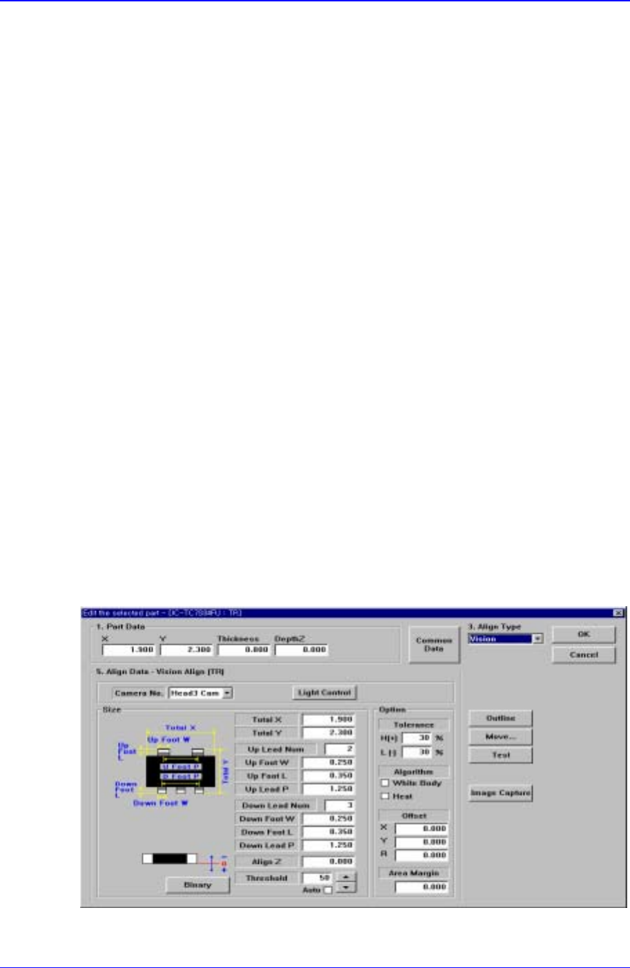 PCB Edit Command 1 1-45 <Camera No.> combo box Select the camera to recognize the component. <Light Control> button Set the light for the camera to recognize the component. <Size> group Set the Al…
