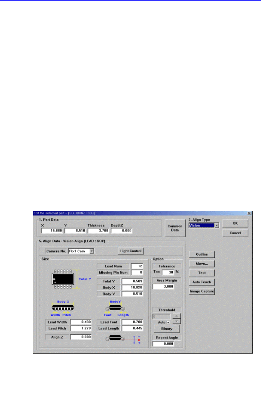 Figure 11-33. “Align Type = Vision, Package Group = SOJ” dialog box