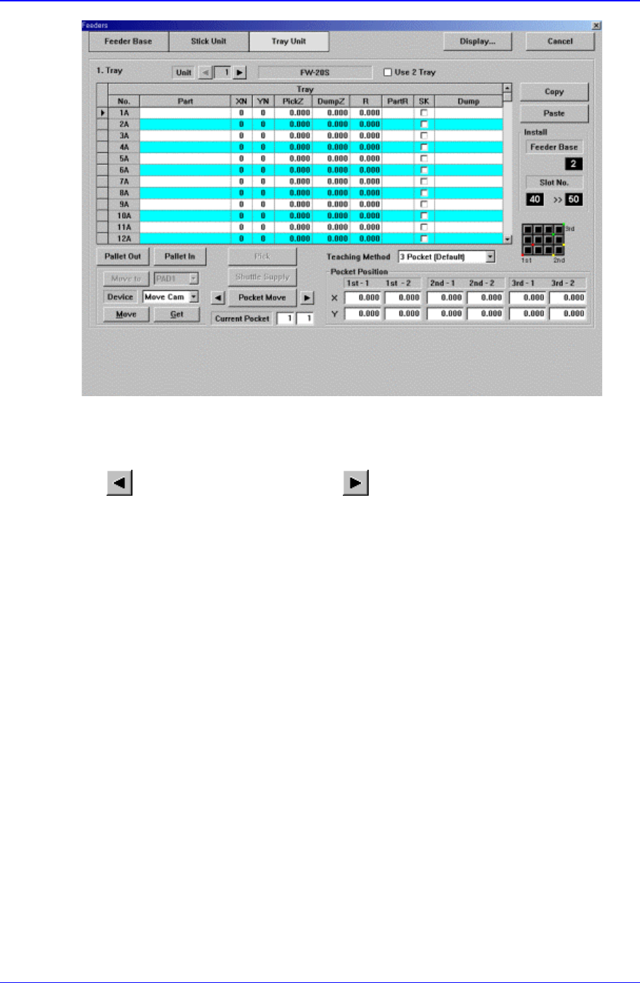 Samsung Component Placer CP-45F(V)/FS Operations Manual 11-88 Select the part to install on the corr esponding tray. When the<Part> colum n is clicked on, a combo box appears, and among the com ponents registered i…