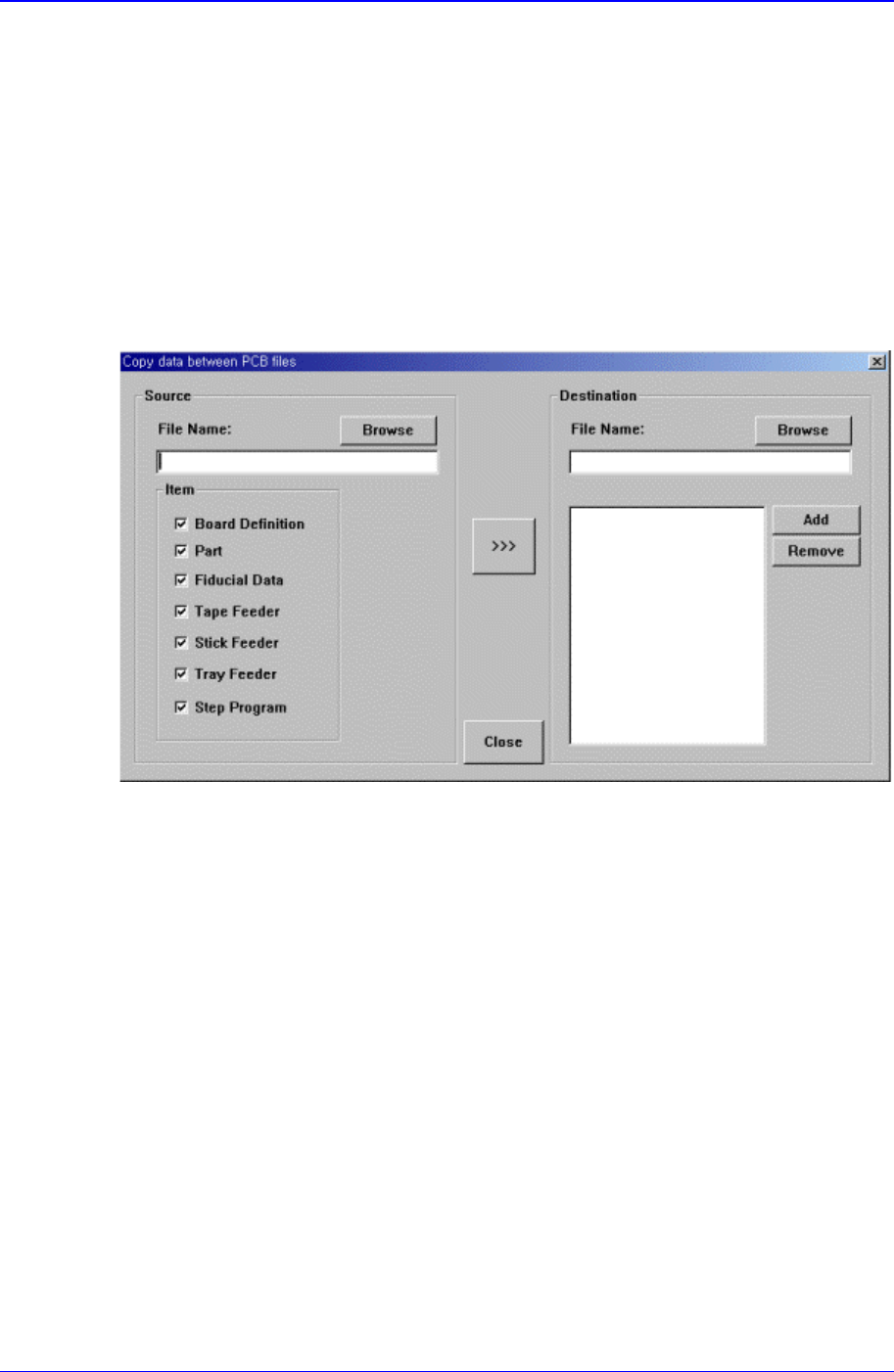 When the <Copy data between PCB file> command is selected, the following dialog box