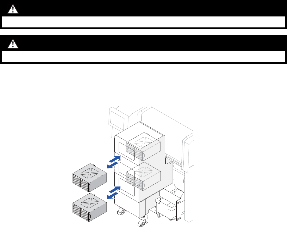 • 请注意不要使料盘箱在更换时落下。料盘箱落下后会损坏机器或者使人负伤。