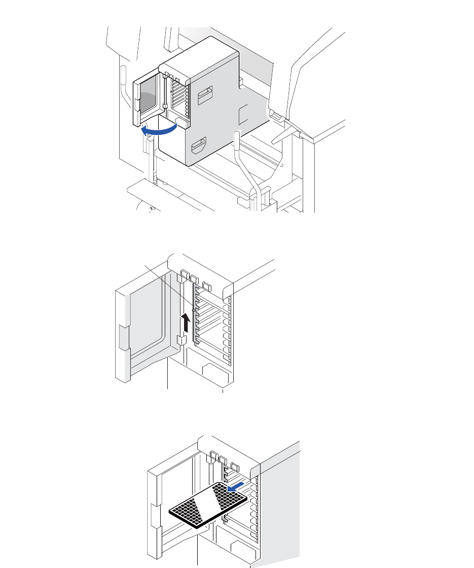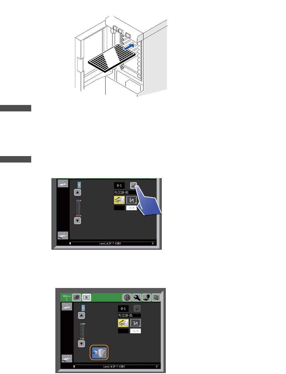 请将料盘安静地插入料槽,插入时避免料盘与料槽碰撞。此外,避免料盘与料槽内部的挡块接触,如果接触,请稍稍撤回料盘。