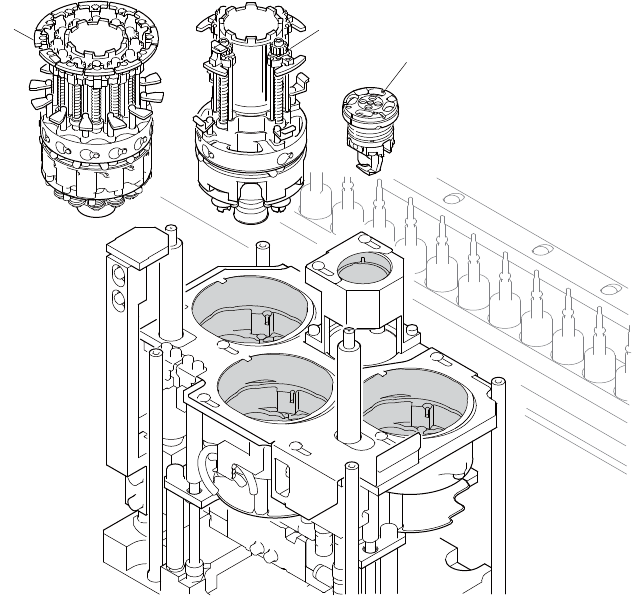 SYS-AIMEX3C-007S0 4. 生产准备 AIMEX III/AIMEX IIIc 系统手册 121 4.10 Dyna 工作头 (HX) 用自动更换头的安装 运用 DX 工作头时,请在模组内设置 DX 工作头专用的自动更换头。在 没有安装自动更换头的状态下运转 机器时,机器将发生故障停机。 关于 DX 工作头的安装说明请参考 「DX 工作头使用说明是」 。 1 自动更换头 R12 2 自动更换头 R4 3 支撑销抓取工具 3…
