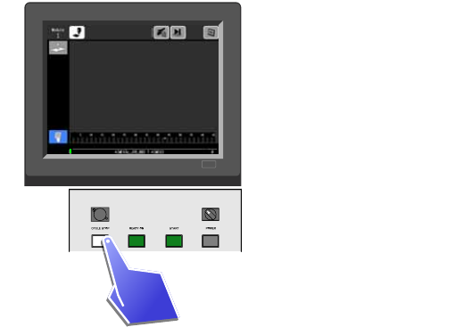 生产中请按下 CYCLE STOP 按钮。机器按照动作周期停止生产。