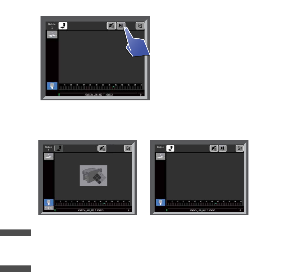 SYS-AIMEX3C-007S0 5. 生产 AIMEX III/AIMEX IIIc 系统手册 127 5.2.2 机器在送出电路板后停止运转 (一块电路板生产完毕后停止) 1. 请再生产中点击 [ 电路板排出 ] 按键。到完成模组内的电路板的生产位置,机 器请保持持续运转。 2. 完成模组内的电路 板的生产后,随着电路板被排出到 下一个工序,就会向下一个模组传 送停止指令。 之后,在操作画面上显示开始等 待画面。 备注 再次点击模…