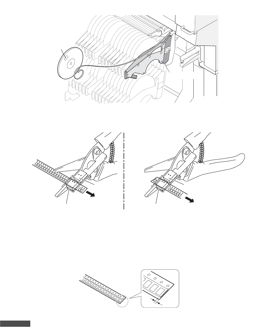 2. 使用料带拼接剪刀,在料带的最后元件的后方与料带间距相吻合的适当位置处剪断料 带。在剪断料
