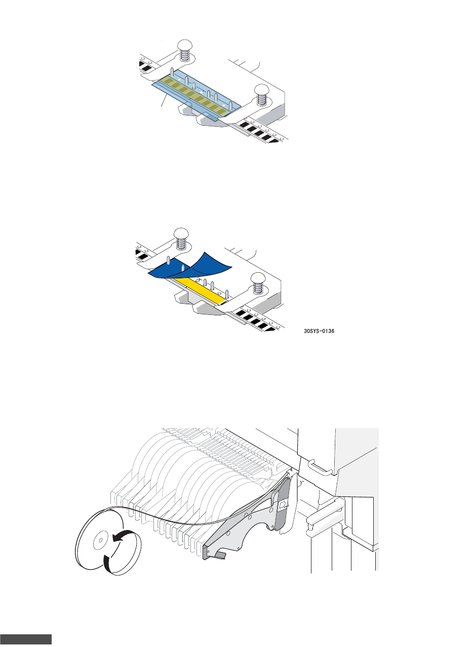 10. 缓慢地将拼接胶带的表面薄膜上的蓝色部分剥离。留下已结合在料带上的黄色胶带。