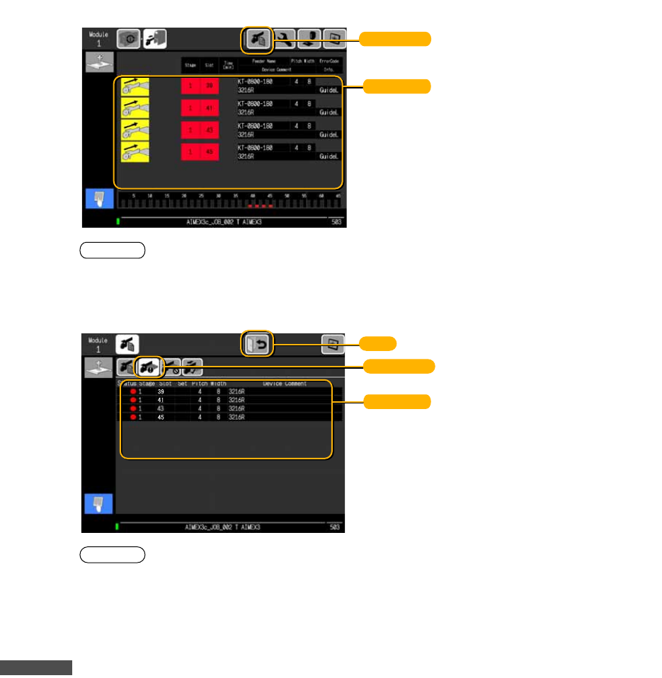 供料器更换向导画面有 [ 面板显示 ] 和 [ 列表显示 ] 的 2 种类型。总之都要在显示的料槽上搭载供料器。