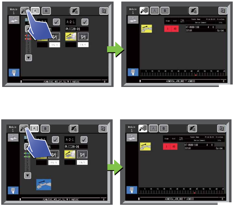 当完成料盘补料或点击 [ 供料器搭载 ] 按键时,画面将切换成供料器搭载案内画面。