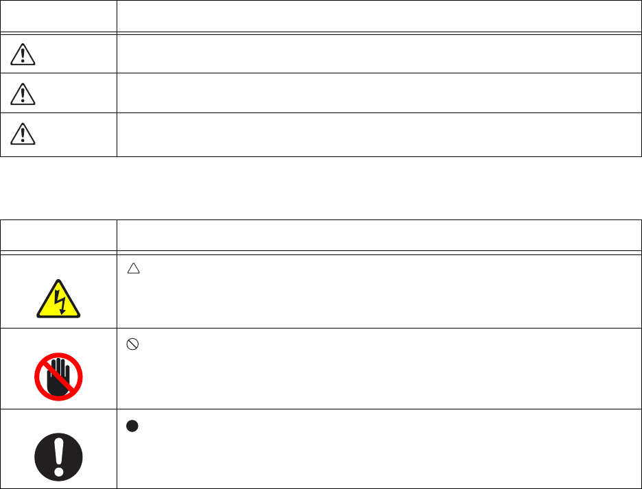 本手册以及产品上的的警示标签都用危险等级以及标识进行了区分。在阅读手册正文之前请先仔细阅读下