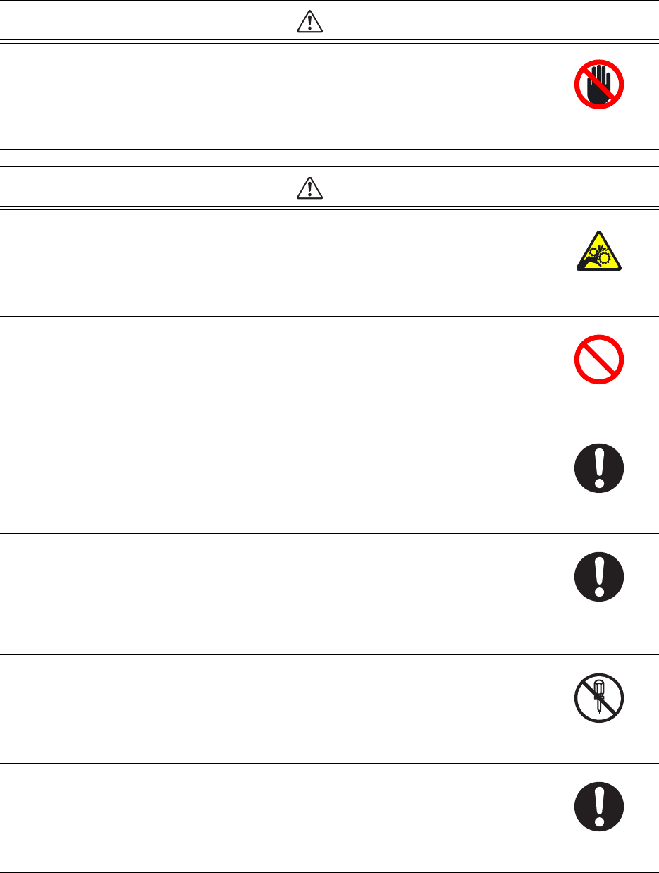 • 身体或者衣服有可能被卷入机器而导致负伤或死亡。
