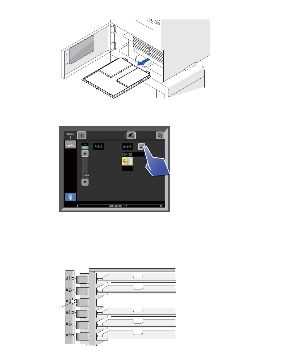 5. 生产 SYS-AIMEX3C-007S0 160 AIMEX III/AIMEX IIIc 系统手册 2. 将料盘搭载到料盘 托盘上。 3. 将托盘搭载到相应 的料槽内。 备注 请将托盘安静地插入料槽,插入时避免料盘与料槽碰撞。 4. 需要指定第一个取 料点是请从此处进行设置。详细操 作请参考 「4.8.3 料盘元件的第一个取料点」 。 5. 请点击 [ 料盘搭载 ] 按键。 01SYS-0321 30SYS-1001 oNnLL…