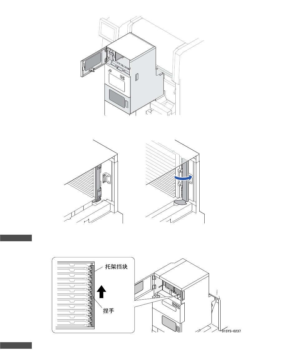 • 不抬起托架档块就进行元件的补充作业时,有可能损坏料盘托架或者料盘箱。