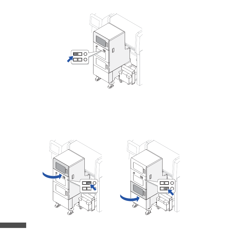 3. 打开正面安全门搭载料盘。搭载方法请参考 「5.5.1 向导画面和补充步骤 (Verify ON 时)」或