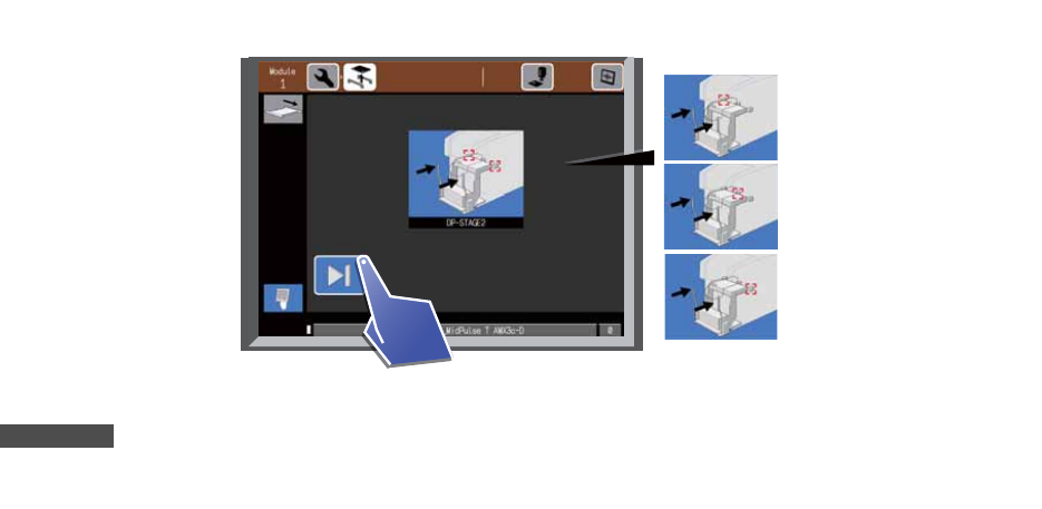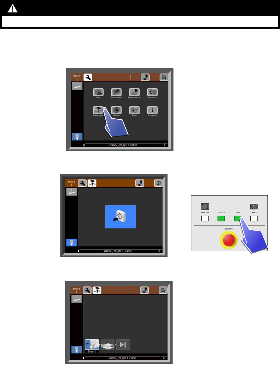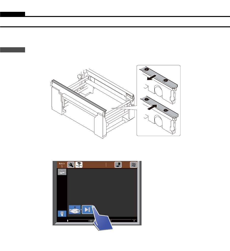 10. 操作画面上显示以下示意图时,请点击 [ 实行 ] 按键。机器将自动夹紧供料单元。