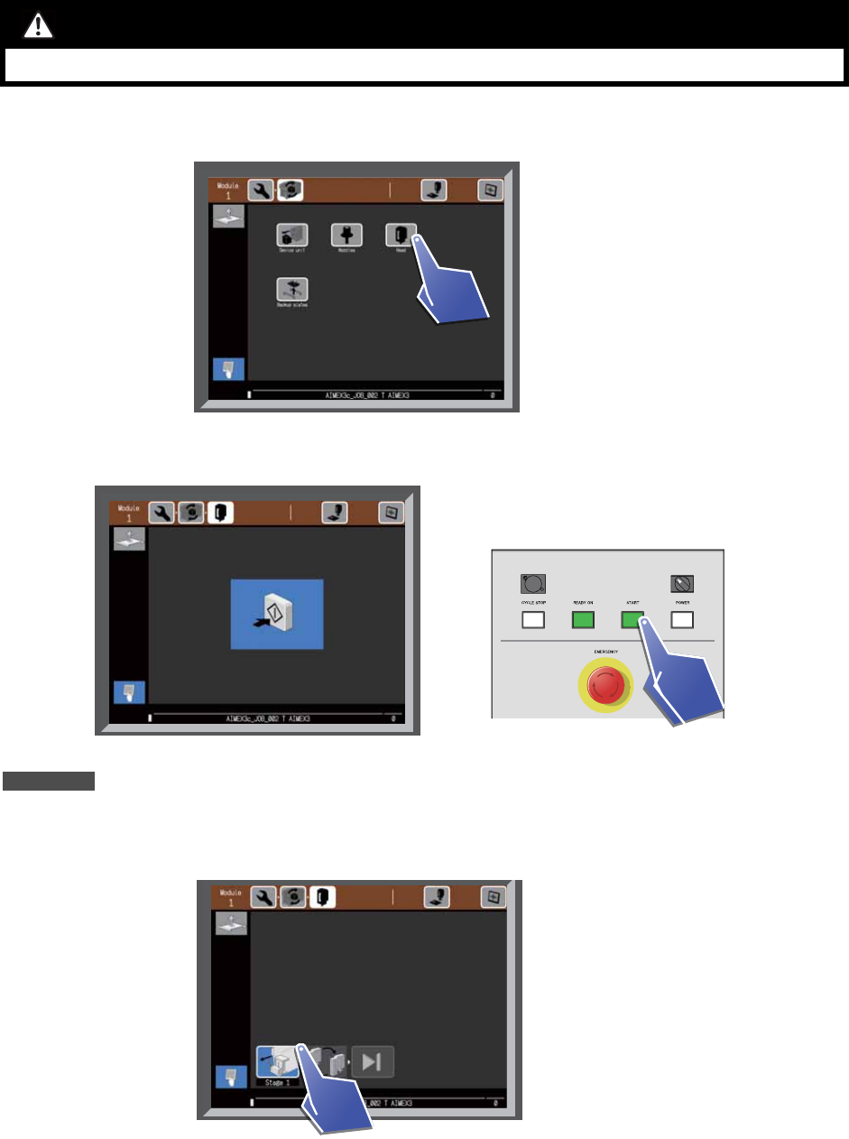 2. 显示为搬运轨道宽度调节的开始等待画面。请按下 [START] 按钮。