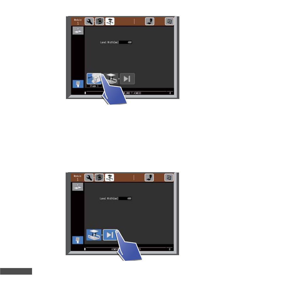 2. 显示为搬运轨道宽度调节的开始等待画面。请按下 [START] 按钮。