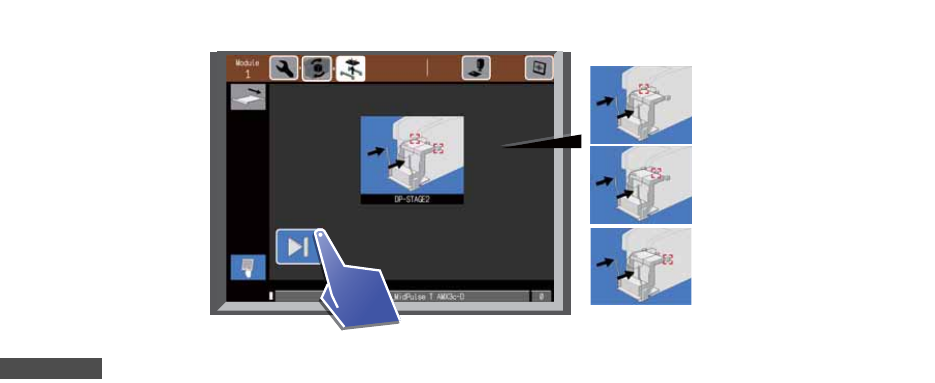 10. 操作画面上显示以下示意图时,请点击 [ 实行 ] 按键。机器将自动夹紧供料单元。