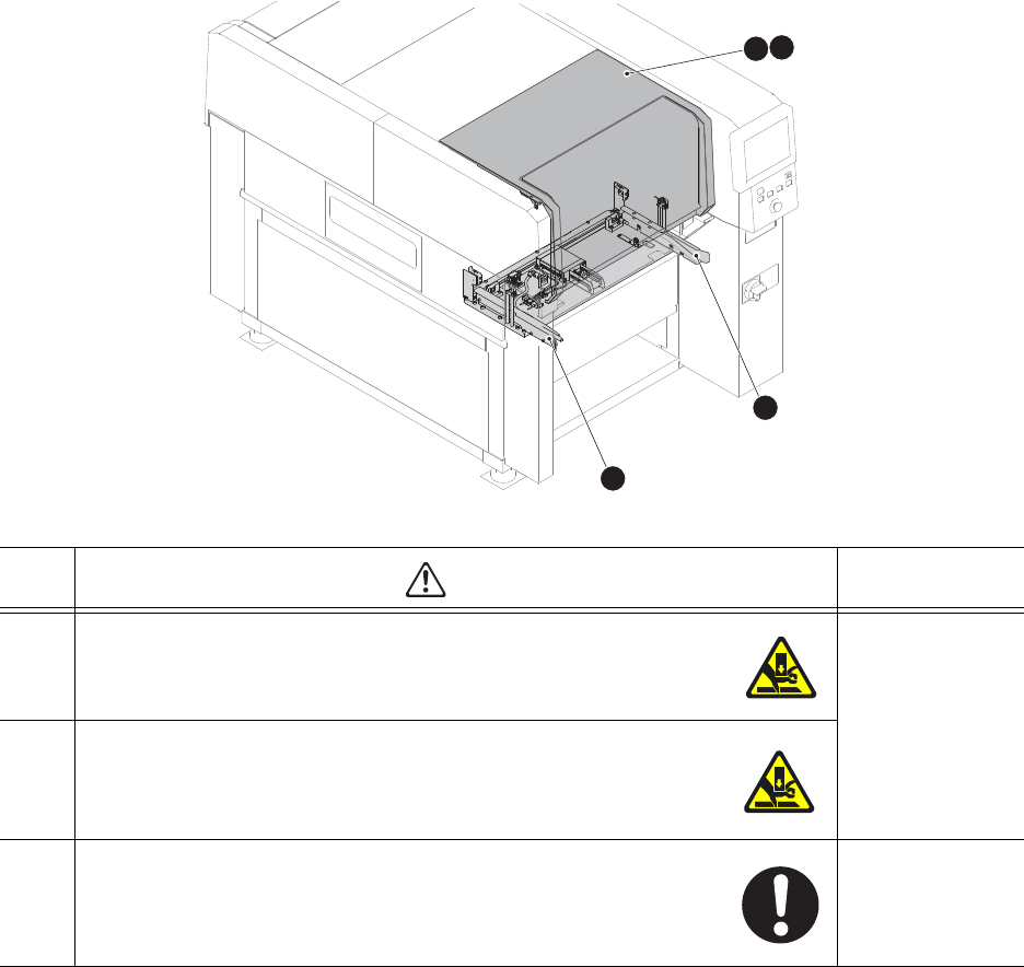 SYS-AIMEX3C-007S0 1. 安全指南 AIMEX III/AIMEX IIIc 系统手册 7 注意 相关章节 8 开关机器翻盖时请不要夹到手 指或身体。 "3.9", "4.4", "4.5", "6.6", "6.7" • 否则,手指可能会因此而受伤。 9 打开正面安全门时必须完全打 开。 • 如果安全门只打开一半,停留在…