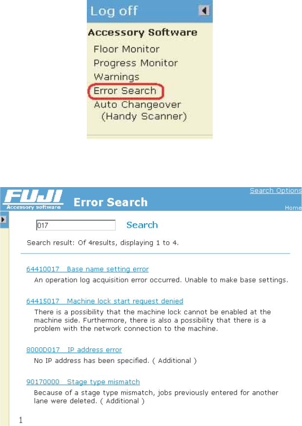 单击菜单的 [Error Searc] 后,显示出错误搜索画面。