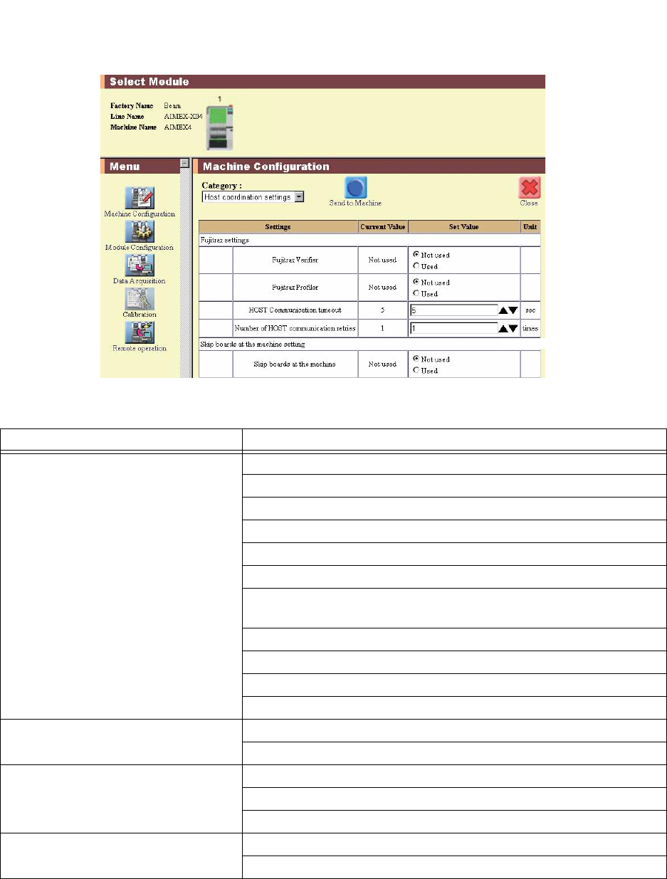Host coordination settings Fujitrax settings