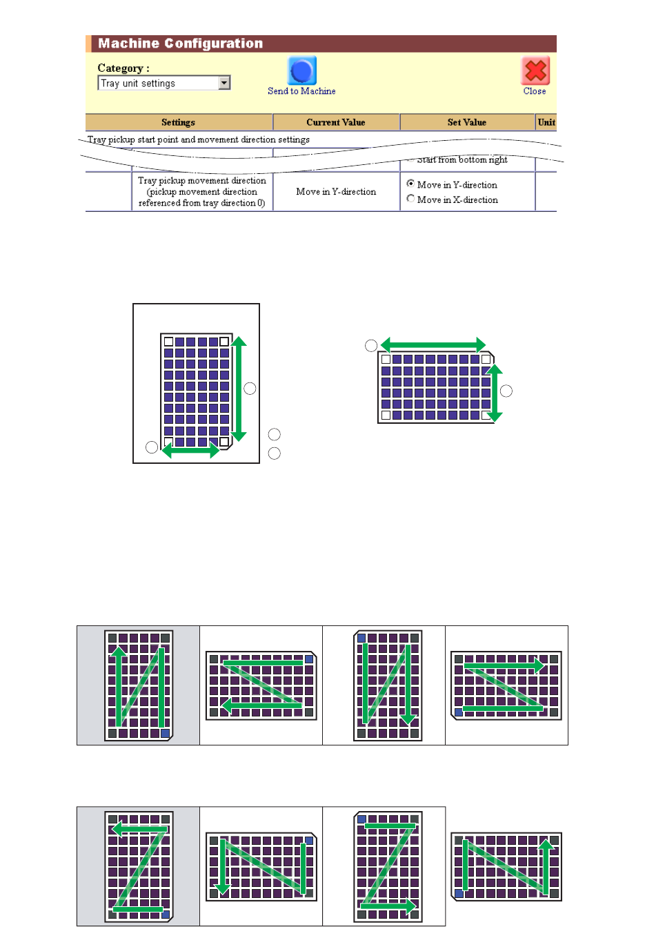 • [Tray pickup movement direction]: 选择 [Move in Y-direction] 或者 [Move in X-direction]。