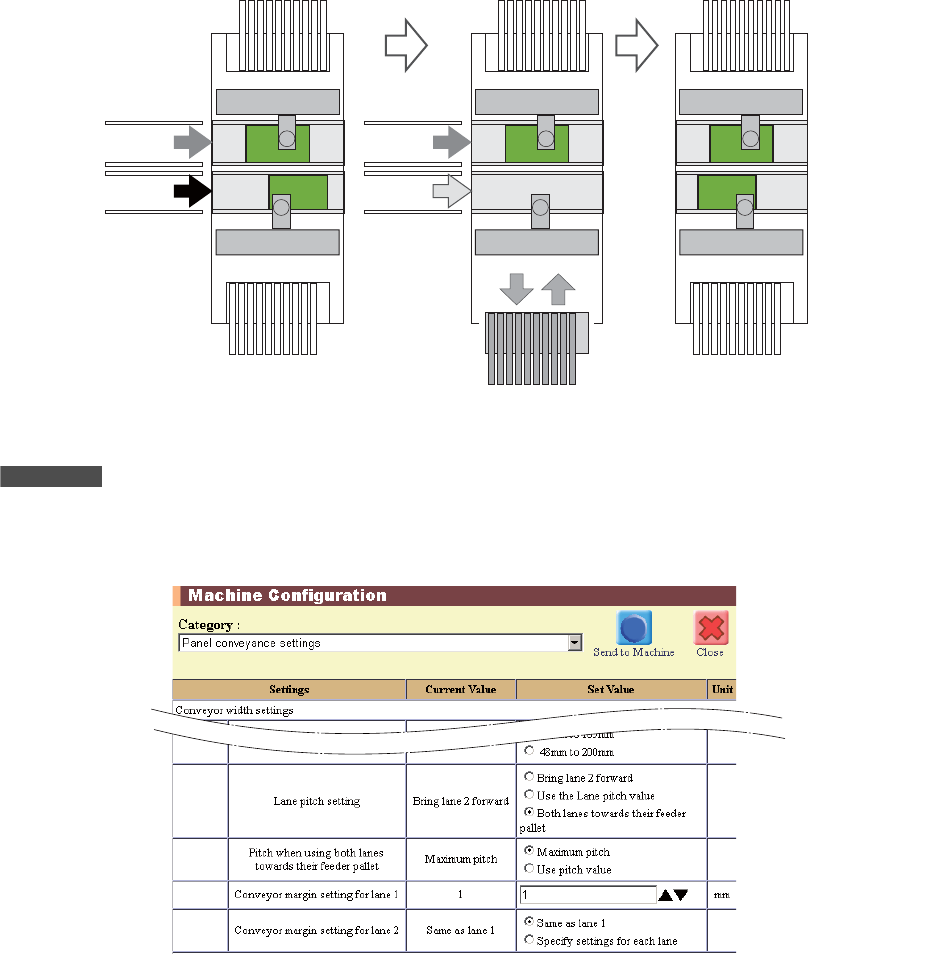 • 「料盘动态次料站补充的料站移动顺序」: 「生产料盘箱优先」或者 「补充料盘箱优先」