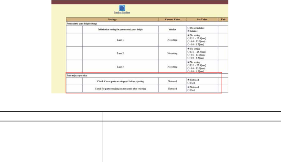错误元件的废弃后带回确认功能 设定废弃错误元件后确认带回的功能的有效 / 无效。设定时,周