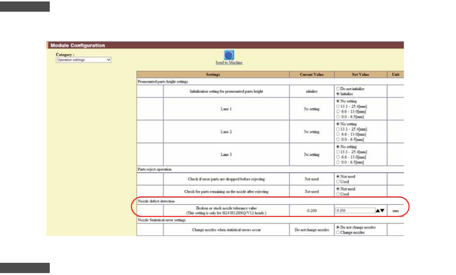 如果在生产中吸嘴折断的时候 ( 吸嘴长度比设定的公差值短的时候 ) 显示错误编码 (8407) 停止。因此,可